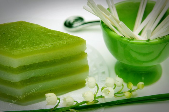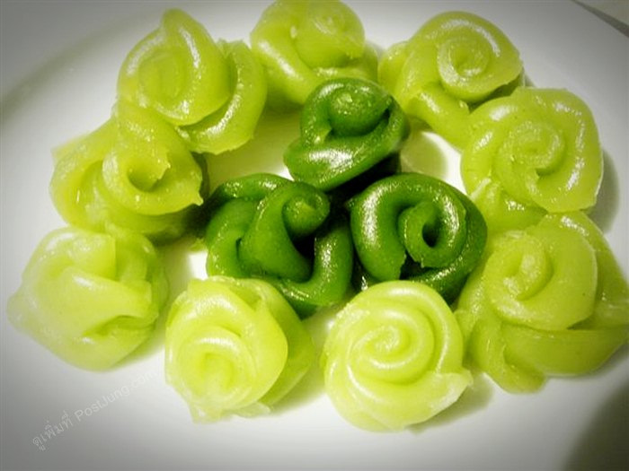 - แป้งถั่วเขียว จะทำให้ขนมอยู่ตัว ไม่เหนียวมากเกินไป