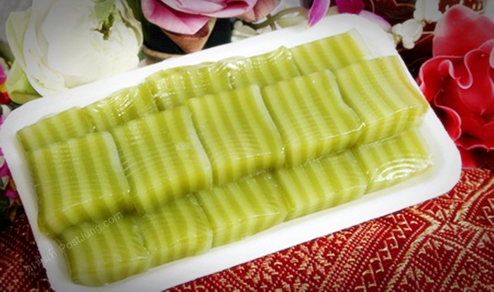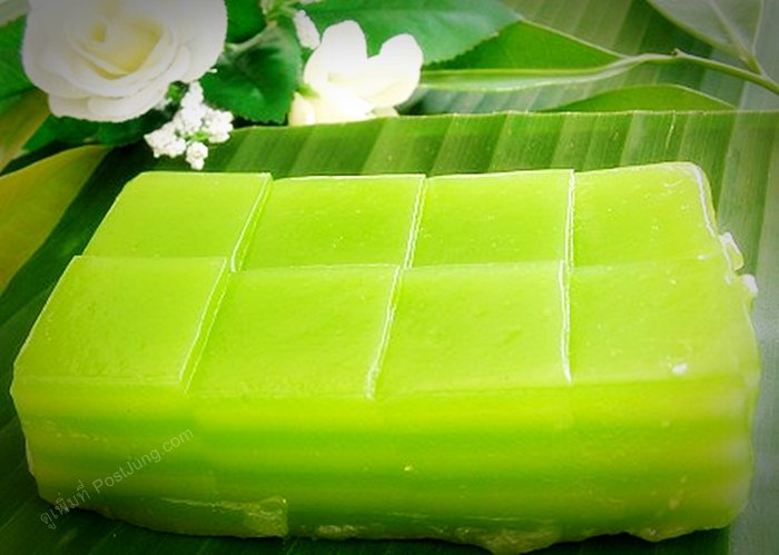 - แป้งมัน จะทำให้เนื้อขนมเนียน นุ่ม เหนียว หนืด ดูใสเป็นมัน
