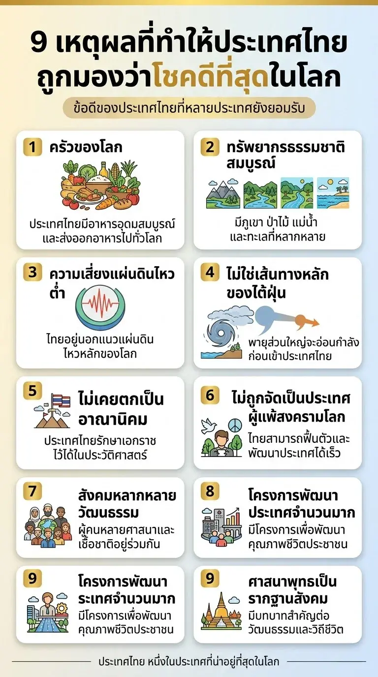 ทำไมหลายคนบอกว่าไทยคือประเทศที่โชคดีที่สุดในโลก? เปิด 9 เหตุผลที่หลายคนไม่เคยรู้