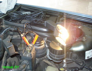 หลอดไฟที่ใช้ส่องให้แสงสว่างในการซ่อมรถ เพื่อความปลอดภัย ผมใช้โคมแบบหลอดแรงดันไฟต่ำ ซื้อที่เขาวางขายทั่วไป ได้มาพร้อมหลอด 12 โวลต์ 21 วัตต์ ความสว่างก็พอใช้งานได้ การซ่อมรถปกติผมก็ใช้หลอดนี้ส่อง และใส่ท้ายรถไว้ยามฉุกเฉินอาจมีประโยชน์