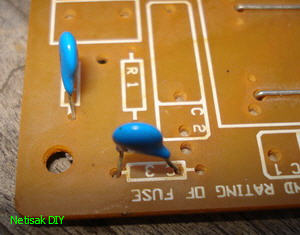 1. เพื่อความปลอดภัย ต้องถอดตัวเก็บประจุบางตัวออก และตัดปริ้นต์ทองแดงออก ตามที่แนะนำ เพื่อกันไฟรั่วลงกล่อง