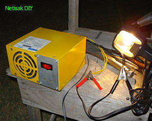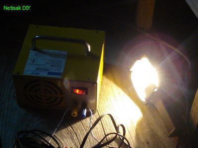 เครื่องจ่ายไฟให้หลอดไฟที่ใช้ส่องสว่างในการซ่อมรถ ตามตัวอย่างนี้ ไม่มีขายในท้องตลาด ต้องทำเองเท่านั้น ....
