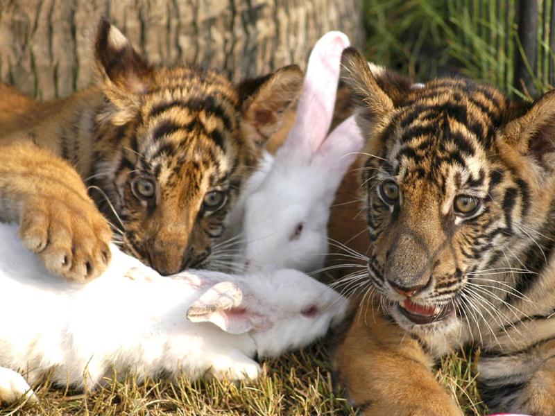 1. เจ้าลูกลิงชิมแปนซีกับลูกเสือ
