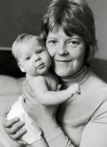 แม่ เลสลีย์ บราวน์ (Lesley Brown) กำลังอุ้ม หลุยส์ บราวน์ เด็กหลอดแก้วคนแแรกของโลก