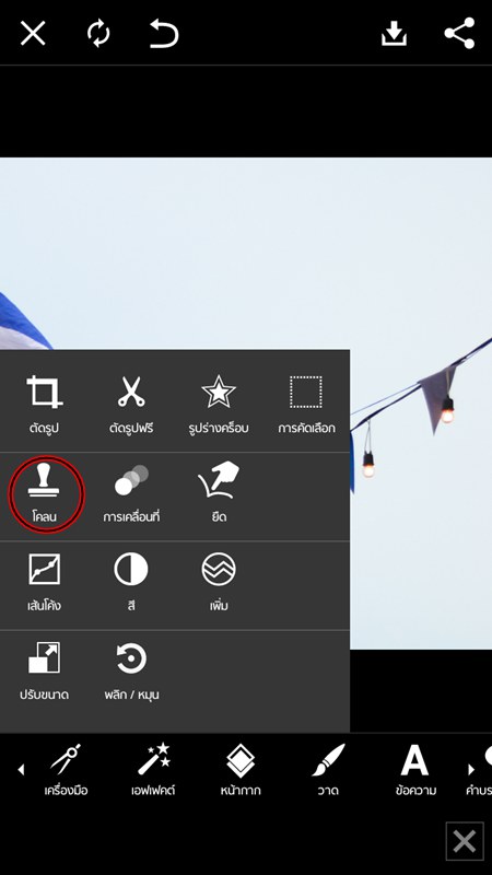 เสร็จแล้วเลือกตรงหัวข้อเครื่องมือ ละ Crop ภาพ ตามจินตนาการเรากันเลย