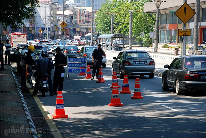 10. ถ้าโดนตำรวจเรียก กรุณาเตรียมเอกสารต่างๆให้พร้อมเพื่อแสดงแก่เจ้าหน้าที่ เช่นใบขับขี่ ทะเบียนรถ และป้ายวงกลมที่ได้จากขนส่ง เป็นต้น อย่าพูดภาษามาเลย์ หรือภาษาอังกฤษกับเจ้าหน้าที่เด็ดขาด ไม่ต้องมาโชว์ความเก่งในตอนนี้ ถ้าท่านพูดกับเจ้าหน้าที่ จะโดนหลากหลายข้อหาทันที ดังนั้นพยายามพูดไทยกับเจ้าหน้าที่ แกล้งทำเป็นสืื่อสารกันไม่รู้เรื่อง ตำรวจจะกวนท่านไม่นานก็จะปล่อยถ้าท่านไม่ได้ทำผิดรุนแรง เช่นใช้ความเร็วเกินกำหนด เป็นต้น
