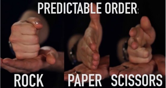 แต่ทางเมืองนอกนั้น เรียกเกมนี้ว่า ก้อนหิน กระดาษ กรรไกร (น่ารักจัง) ซึ่งวิธีการเล่นก็เหมือนกับเราทุกอย่างครับ แต่จะมีมือมารองไว้เป็นมารยาทนั่นเอง และก็ต้องขอบคุณ BuzzFeedBlue ที่ได้ทำการวิจัยเทคนิคการเอาชนะในการเป่ายิ้งฉุบมาให้พวกเราได้ดูกัน ถ้าพร้อมแล้วหล่ะก็…