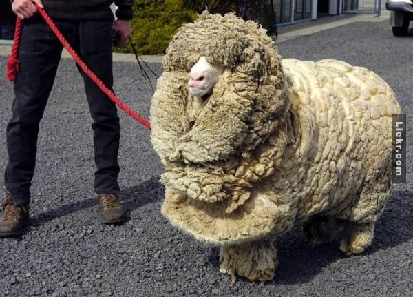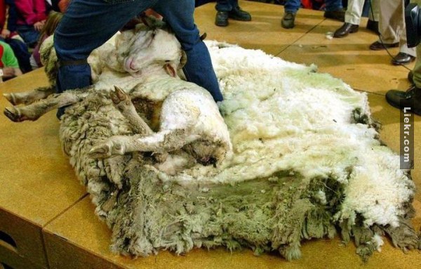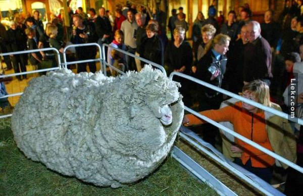 ▼ปรากฏว่าขนแกะที่ตัดออกมาจากร่างกายของ Shrek มีน้ำหนักถึง 27 กิโลกรัม