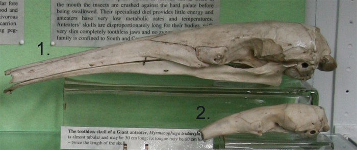 อาหารของเจ้านี่ คือ แมลงเล็กๆ อย่างเช่นมด ซึ่งอยู่ในรังแบบโพรง มันจึงต้องมีปากแบบท่อ มีลิ้นที่ยาว+เล็ก (อาจยาวได้ถึง 2 ฟุต กว้างครึ่งนิ้ว) และน้ำลายเหนียวๆ แหย่ไปเอาแมลงมากิน ด้วยความเร็วจนเสียว คือ 150 ครั้งต่อนาที (เป็นเราคงเมื่อย) ฝรั่งบอกว่าตัวกินมดไม่มีฟัน เลยเคี้ยวแมลงด้วยเขาเล็กๆ ที่โตขึ้นมาบนเพดานปากและกระพุ้งแก้มแทน