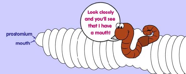เปล่าเลย ปากแบบเหมือนในการ์ตูนเลย ดูสิ ยิ้มน่ารักไหมนั่น ด้วยปากเล็กๆ ก็ต้องกินของเล็กๆ แล้วไส้เดือนไม่มีฟัน (มีแต่ gizzard ซึ่งก็ไม่รู้เป็นยังไง) ก็ต้องกินของนิ่ม ถ้าไม่นิ่มก็จะปล่อยน้ำลายมาทำให้นิ่มแล้วดูดกลับ อย่าไปลองทำตามที่บ้านนะครับ