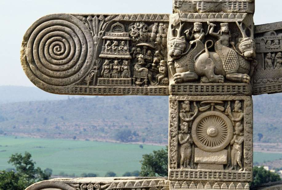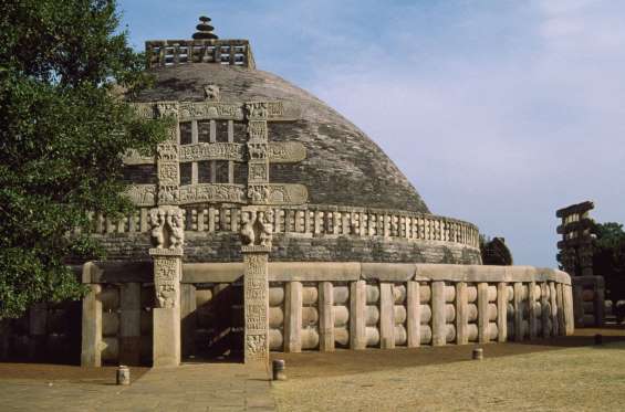 มหาสถูปสาญจี เป็นโครงสร้างหินเก่าแก่ที่สุดในอินเดีย ถูกสร้างขึ้นตามคำสั่งของพระเจ้าอโศก ในช่วง 300 ปี ก่อนคริสตกาล ใจกลางของสถูปเป็นโครงสร้างอิฐครึ่งวงกลม ซึ่งภายในบรรจุพระบรมสารีริกธาตุ