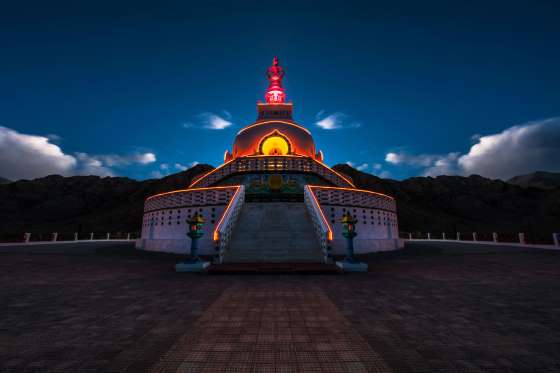 ศานติสถูป เป็นเจดีย์ทรงโดมสีขาว ตั้งอยู่ในเมืองจันสปา แคว้นลาดัก สร้างขึ้นเมื่อปี 1991 โดยคณะเจดีย์เพื่อสันติภาพของญี่ปุ่น ภายในสถูปแห่งนี้ บรรจุพระบรมสารีริกธาตุ นอกจากจะมีความสำคัญทางศาสนาแล้ว สถานที่แห่งนี้ ยังเป็นจุดชมวิวที่งดงามอีกด้วย