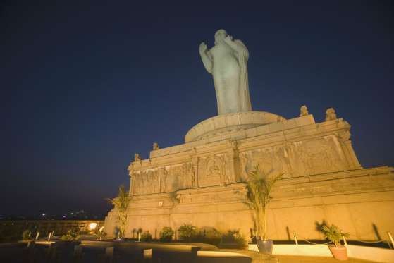 พระพุทธรูป ที่ประดิษฐานริมทะเลสาบฮุสเซน ซาการ์ เมื่อปี 1992 มีความสูง 18 เมตร และได้ชื่อว่า พระพุทธรูปที่สูงที่สุดในโลก มีเรื่องเล่าว่า ระหว่างการขนย้าย เมื่อปี 1990 พระพุทธรูปเกิดหล่นลงสู่ทะเลสาบ และต้องใช้เวลา 2 ปี ในการกู้พระพุทธรูปกลับขึ้นมา