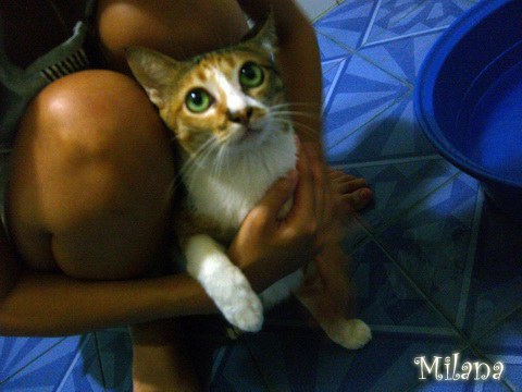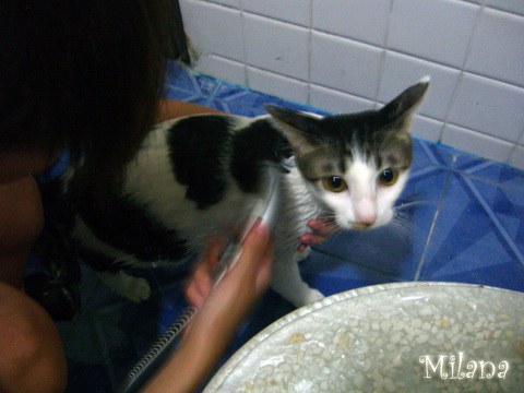 ก็เลยขอลองมั่ง... ด้วยความหวังที่ว่า สามสีมันจะเลิกกลัวโมโม่ซะที ส่วนโมโม่ก็เลิกหมั่นไส้สามสีซะที (สามสีไม่กลัวคนแต่กลัวแมว โมโม่ไม่กลัวแมวไม่กลัวหมาแต่กลัวคน...(แต่ถ้าเป็นสาวน้อยร่างบางมันไม่กลัว นะ! เช่นน้องบี...) โมโม่เคยอาบครั้งนึงแล้วตอนเป็นลูกแมวอายุประมาณ 2 เดือนกว่า แต่สามสีเกิดมายังไม่เคยอาบ เราเลยตื่นเต้นน่าดู >,<