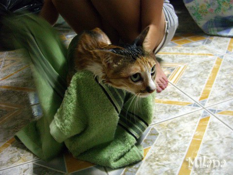 หอมฟุ้งเลยทีเดียว =w=b อาบเสร็จออกมาปลอดภัยทั้งคนทั้งแมว ไม่มีรอยขีดข่วนใดๆ เกิดขึ้นทั้งสิ้น ระหว่างอาบน้ำมีแค่ดิ้นไปมานิดหน่อย เราก็แค่ต้องจับให้อยู่ แต่อย่าแรงนะจ๊ะ