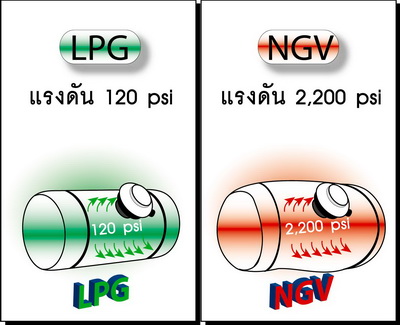 แต่ที่มันอันตรายและน่ากลัวก็คือ ก๊าซ LPG หรือ ก๊าซหุงต้ม เป็น ก๊าซที่ติดไฟได้อย่างรวดเร็ว และเป็น ก๊าซหนัก เมื่อรั่วแล้วจะกระจายไปในพื้นราบ ไม่ลอยหายไปในอากาศ ต่างหาก ก๊าซ NGV ที่ได้รับการรับรองความปลอดภัยให้ใช้ในรถยนต์ได้ เพราะเป็น ก๊าซเบา เมื่อรั่วออกมาหรือรถชนกันถังแตกก็ไม่ระเบิดไม่ติดไฟ เพราะก๊าซจะลอยหนีขึ้นไปในอากาศและจางหายไป