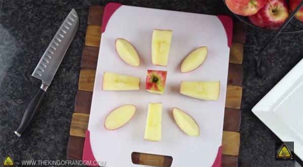 3.แล้วก็จะได้แอปเปิ้ลหั่นแล้ว 8 ชิ้นสวย ๆ แถมไม่ติดเมล็ดด้วยนะ