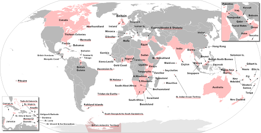 จักรวรรษอังกฤษนับว่าเป็นมหาอำนาจที่แข็งแกร่งที่สุดและมีดินแดนอาณานิคมในครอบครองมากที่สุดในโลก อาทิเช่น สหรัฐอเมริกา(ฝั่งมหาสมุทรแอตแลนติก), แคนาดา, ออสเตรเลีย, นิวซีแลนด์, มาเลเซีย, อินเดีย, พม่า, สิงคโปร์, ฮ่องกง, หลายประเทศในทวีปแอฟริกาและหมู่เกาะต่างๆ ทั่วโลก ดังนั้นจึงไม่ต้องแปลกใจว่าเหตุใดภาษาอังกฤษจึงถือเป็นภาษาสากล