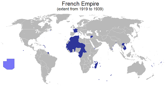จักรวรรดิฝรั่งเศสมีอาณานิคมอยู่เกือบทั่วโลก ส่วนมากอยู่ในทวีปอเมริกาและแอฟริกาและบางส่วนของเอเชียและโอเชียเนียโดยรวมมีเนื้อที่ 13,000,000 ตารางกิโลเมตร คิดเป็นพื้นที่ร้อยละ 8.7 ของโลก ได้แก่ ประเทศเวียดนาม, ลาว, กัมพูชา, มาดากัสการ์, แอลจีเรีย, มาลี, ไนเจอร์, ชาด เป็นต้น