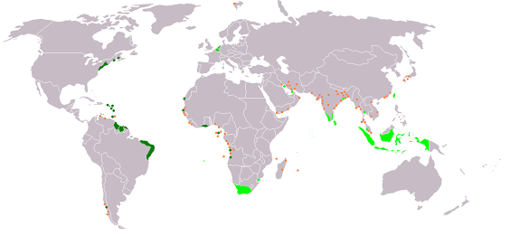 แผนที่โลกแสดงอาณานิคมของจักรวรรดิดัตช์