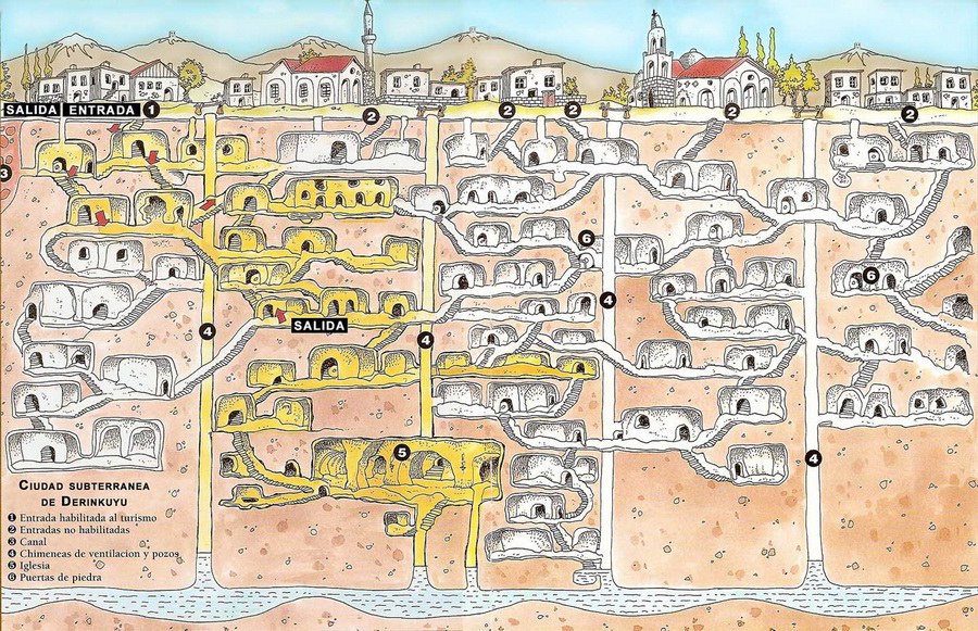 ถูกค้นพบโดยบังเอิญในปี 1960 ที่ประเทศตุรกี จากการทุบผนังบ้านเพื่อต่อเติมของชาวตุรกีรายหนึ่ง จากการสำรวจพบว่าเป็นเมืองใต้ดินที่ถูกออกแบบมาอย่างสมบูรณ์ ภายในประกอบไปด้วย ห้องพัก ร้านค้า ห้องเก็บไวน์ ห้องเรียน ห้องสาธารณะ โบสถ์ ที่เก็บน้ำ พื้นที่สำหรับพิธีการทางศพและคอกม้า นักโบราณคดีที่สำรวจระบุว่า เมืองใต้ดินที่ถูกทิ้งร้างแห่งนี้สร้างก่อนคริสตกาล ใช้เป็นที่อาศัย และหลบภัยใต้ดินเพื่อป้องกันการรุกรานจากภายนอก