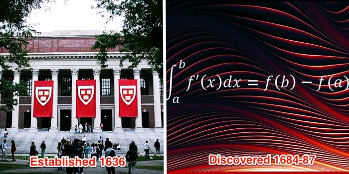 Havard ก่อตั้งขึ้นในปี 1963 ซึ่งถือว่าเก่าแก่ที่สุดในสหรัฐฯ แต่วิชาแคลคูลัสนั้น ถือกำเนิด 50 ปีให้หลัง ต้องขอบคุณ Nova Method ของ Gottfried Leibniz และ Principia ของIsaac Newton ในปี 1687
