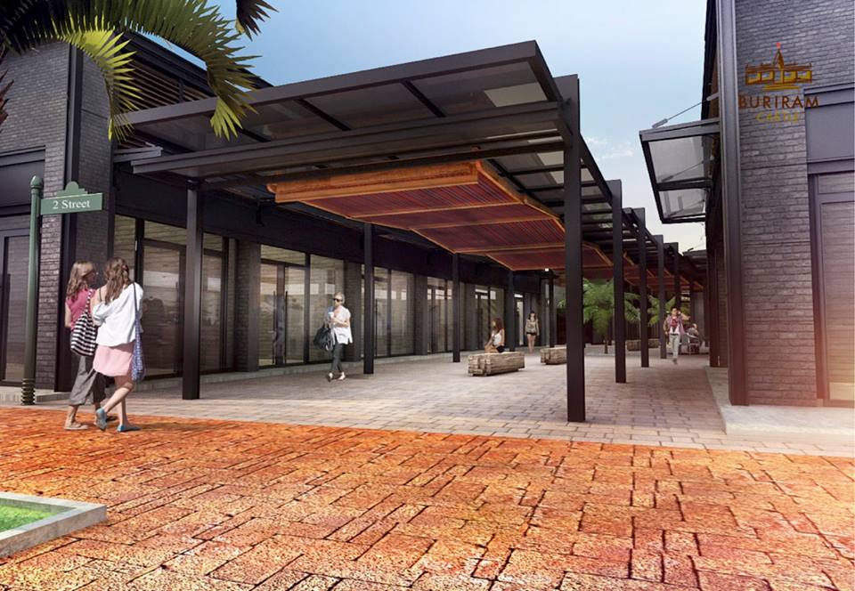 หลังคาทางเดินภายใน Buriram Castle Lifestyle Avenue ถูกออกแบบให้มีความทันสมัยโดดเด่นแต่ยังคงความเป็นวัฒนธรรมพื้นบ้านผสมผสานกันได้อย่างลงตัว