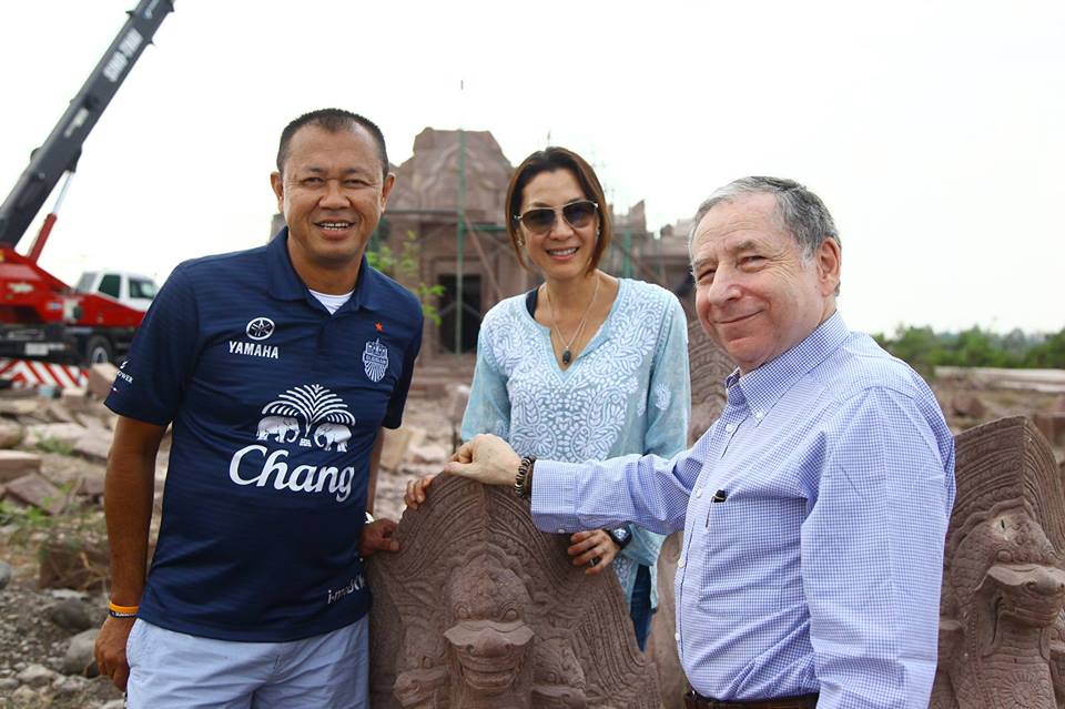 คุณเนวิน ชิดชอบ ประธานที่ปรึกษาโครงการ Buriram Castle ให้การต้อนรับ ฌอง ทอดด์ (Jean Todt) ประธานสมาพันธ์ยานยนต์นานาชาติ (Fédération Internationale de I' Automobile : FIA) และมิเชล โหย่ว (Michelle Yeoh) Superstar ชื่อดังจากภาพยนต์ระดับ Hollywood เยี่ยมชมการก่อสร้างปราสาทหินพนมรุ้งจำลอง ในบริเวณพื้นที่ของโครงการ Buriram Castle