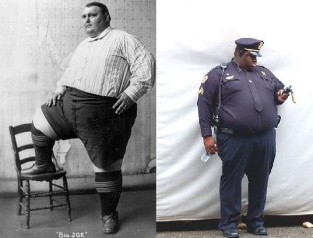 ภาพชายที่ตัวใหญ่ที่สุดในโลกปี 1903 และตำรวจปัจจุบัน
