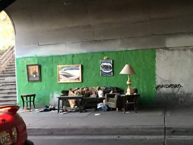 ภาพบ้านของชายไร้บ้านในย่านดาวทานว์ ลอสแองเจลิส