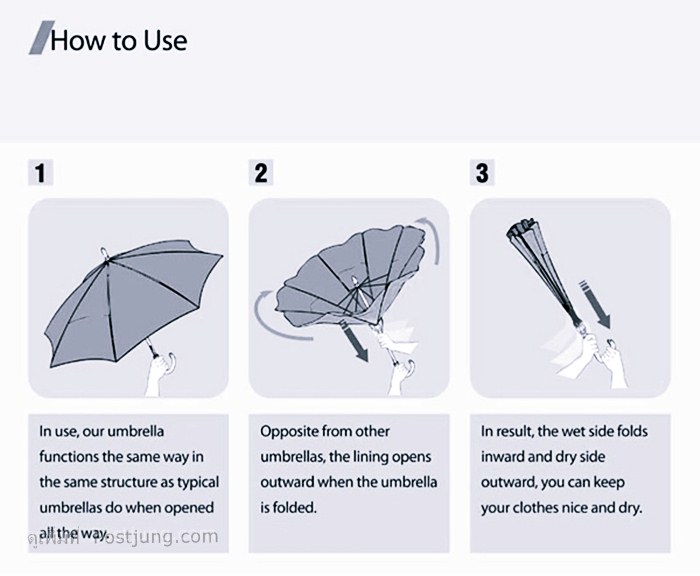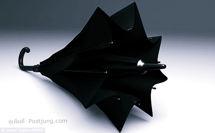 นาย Kazim วัย 61 ปี ชาวอักฤษ เขาเลยได้คิดค้น ร่มที่เปิดจากด้านล่างขึ้นสู้ด้านบน( the umbrellas upside down) ขึ้น เพื่อแก้ปัญหาข้างต้นที่กล่าว แถมไม่มีน้ำหยดออกมาด้วยนะ