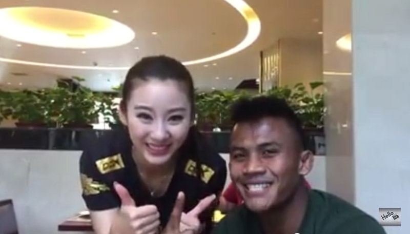 บัวขาวปลื้ม! สาวจีนเป็นเชียร์ก่อนขึ้นชก ไต่ซือ อีหลง WLF World Champion 6 มิ.ย 58