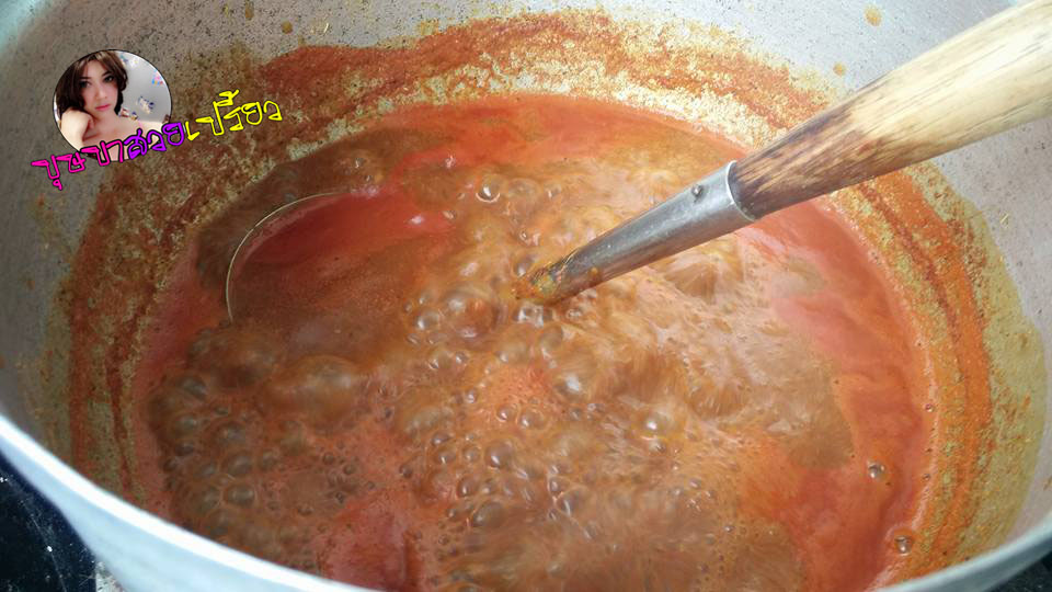 ตั้งไฟจนน้ำแกงเดือดกะปิละลายหมด