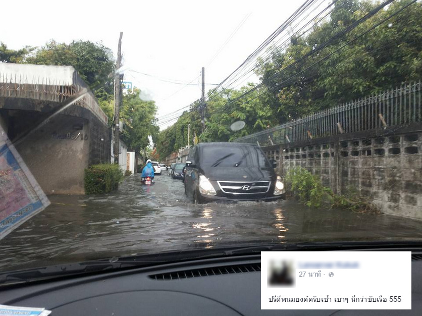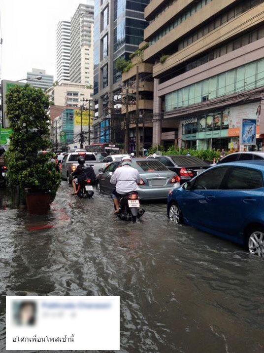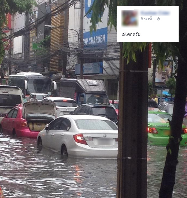 ชาวเน็ตแห่แชร์ภาพน้ำท่วมขัง และสภาพรถติดสุดๆ เช้าวันจันทร์นี้