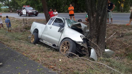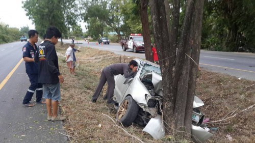 สุดเศร้า คู่หนุ่มสาวพ่อค้าผลไม้จังหวัดระยอง พากับขับรถกลับบ้านฝ่ายหญิง จังหวัดสุโขทัย ระหว่างทางหลับใน รถกระบะชนต้นไม้ เสียชีวิต 4 ศพ รวมทั้งลูกชาย 6 เดือนในท้องด้วย
