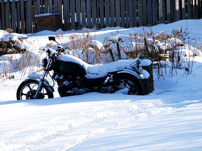 3. จักรยาน-มอไซด์ก็ปั่น-ขับไม่ไป, ล้อจมอยู่ในหิมะครึ่งล้อ – –