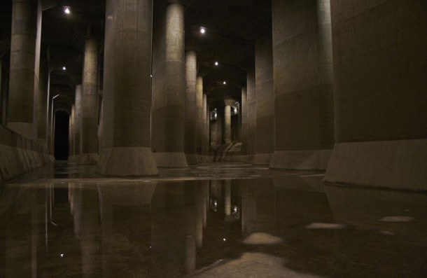 ระบบระบายน้ำ G-Cans เชื่อมโยงกรุงโตเกียวเข้ากับเมืองคาสุคาเบะ จังหวัดไซตามะ ที่อยู่ใกล้เคียง โดยมีถังเก็บน้ำขนาดยักษ์ 5 ถัง เชื่อมต่อกับอุโมงค์ที่อยู่ลึกลงไปใต้ดิน 50 เมตร และมีความยาว 6.4 กิโลเมตร ความโดดเด่นของอุโมงค์นี้คือ มีเสาคอนกรีตขนาดยักษ์ 59 ต้นที่เชื่อมต่อกับเครื่องระบายน้ำ 78 ตัว ที่สามารถระบายน้ำ 200 ตันต่อวินาทีลงสู่แม่น้ำเอโดะ เพื่อป้องกันน้ำท่วมกรุงโตเกียวในฤดูฝนหรือช่วงที่มีพายุไต้ฝุ่น