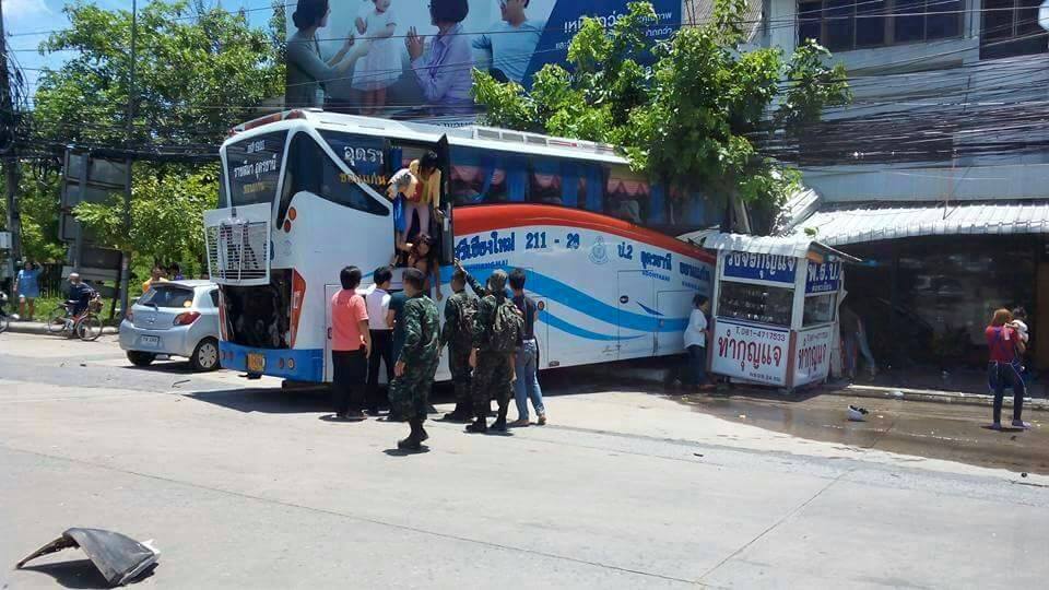 รถทัวร์ หนองคาย-โคราช เบรกแตกพุ่งเข้าร้านทำกุญแจ