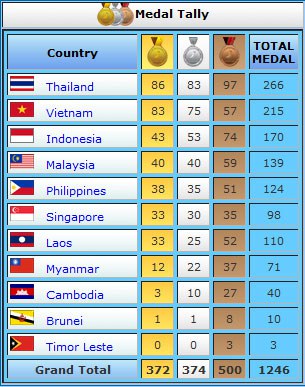 มาดูตารางสรุปเหรียญซีเกมส์ย้อนหลังกันดีกว่าแล้วมาวิเคราะห์กัน