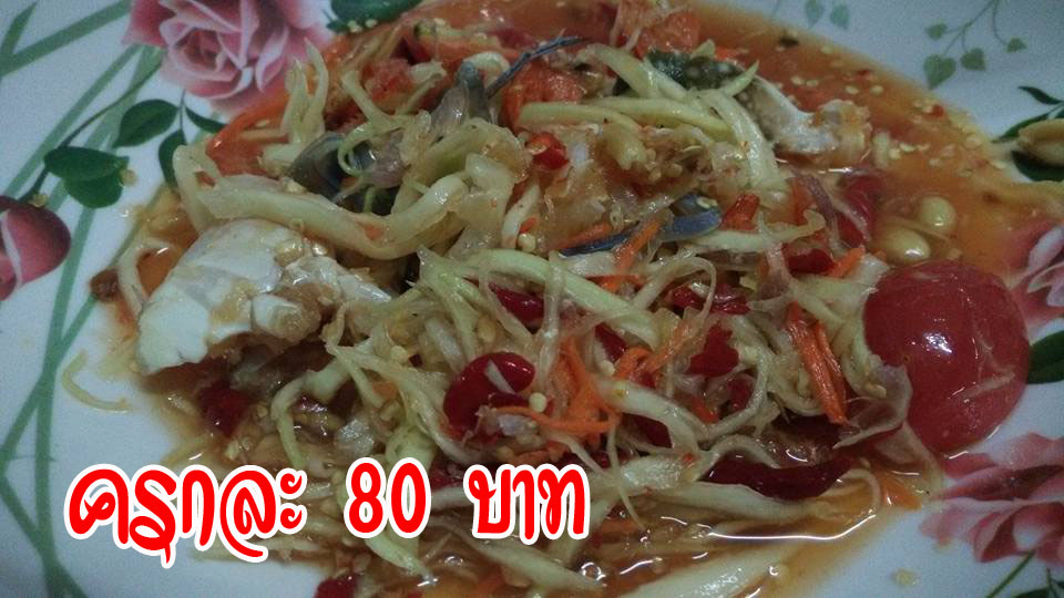 สภาพส้มตำปูม้าครกละ 80 บาท