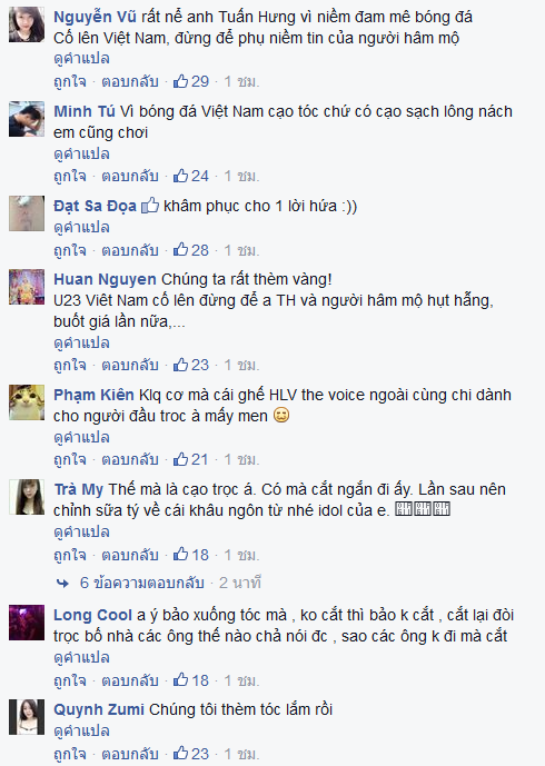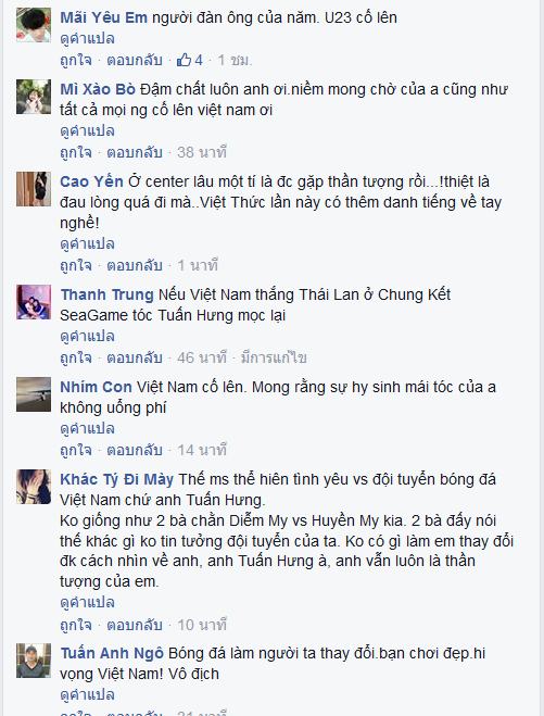 "ตวน ฮุง" นักร้องซุปเปอร์สตาร์ของเวียดนาม ที่ออกท้าทาย โดยเปิดเผยว่า ถ้าหากทีมชาติเวียดนามพ่ายแพ้ให้กับทีมชาติไทย ในศึกฟุตบอลซีเกมส์ ตนจะยอมโกนหัว แต่เมื่อวาน 11 มิถุนายน 2558 "ตวน ฮุง" นักร้องซุปเปอร์สตาร์ของเวียดนาม ได้ตัดผมทรงสกินเฮดท่ามกลางสื่อมวลชนและแฟนคลับ และ ตวน ฮุง เปิดเผยว่าจะไม่ยอมโกนหัวเด็ดขาด ขณะที่ชาวเน็ตไทยและเวียดนาม ต่างก็ถล่มยับ โดยส่วนใหญ่ต่างก็บอกเป็นเสียงเดียวว่า ตวนฮุง ไร้สัจจะ