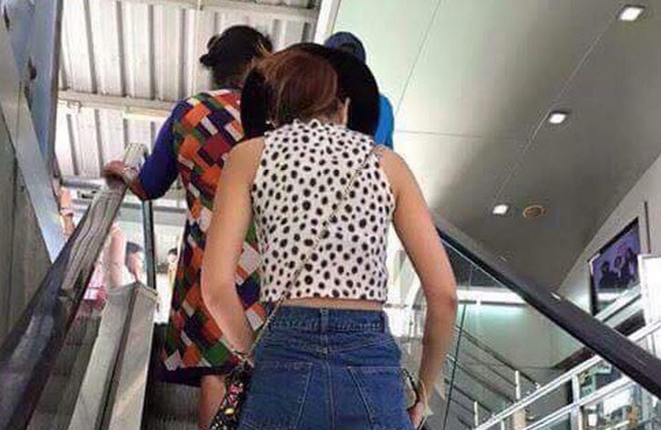 สาวขึ้น BTS มองด้านข้างก็ปกติ แต่พอเลื่อนลงดูข้างล่าง ก็ต้องทึ่งทั้งสถานี!