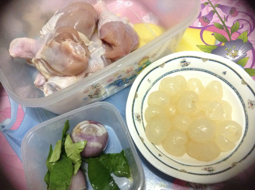 1. เนื้อไก่ประมาณ½ กิโลกรัม (สามารถเลือกใช้ส่วนสะโพกไก่ติดน่อง น่องไก่ หรืออกไก่ก็ได้ค่ะ แล้วแต่ความชอบค่ะ)