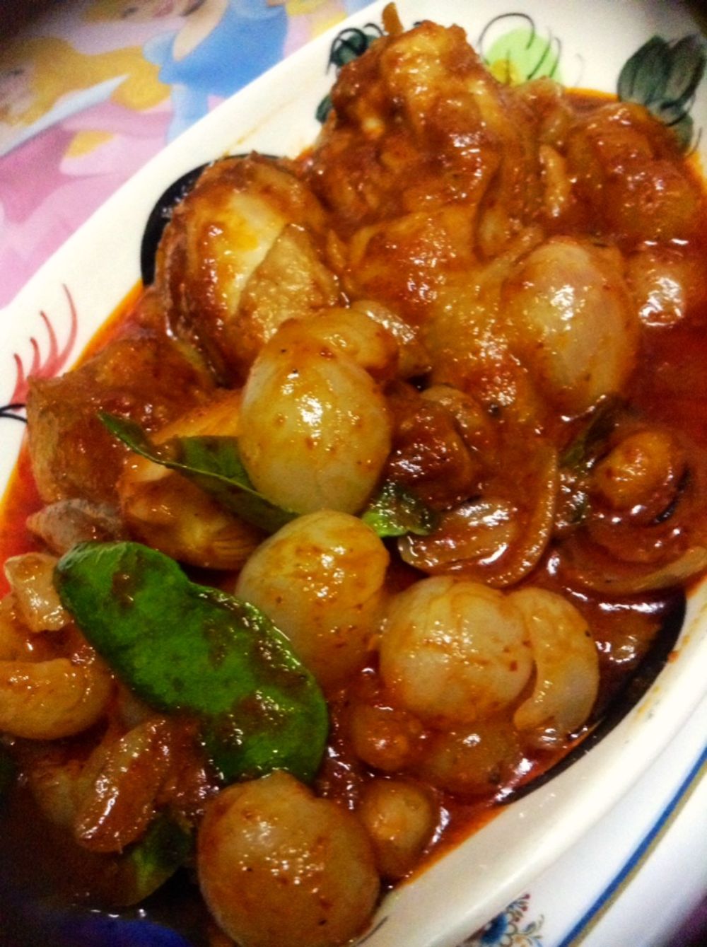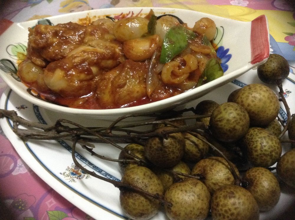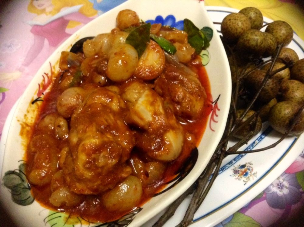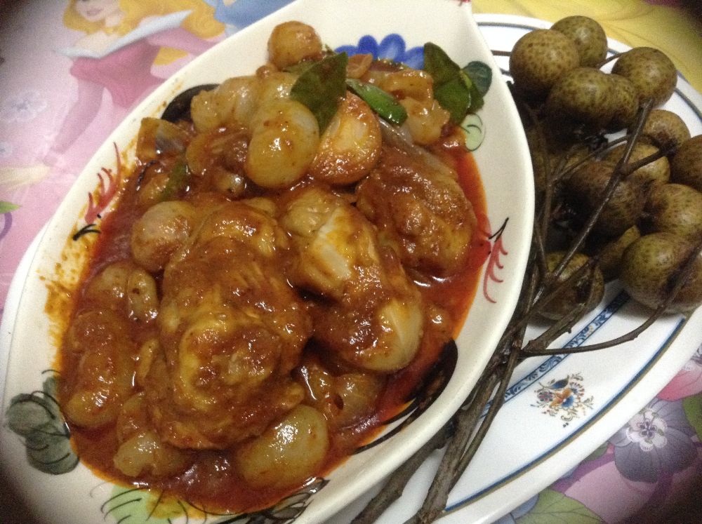 แกงมัสมั่นน่องไก่ใส่ลำไย