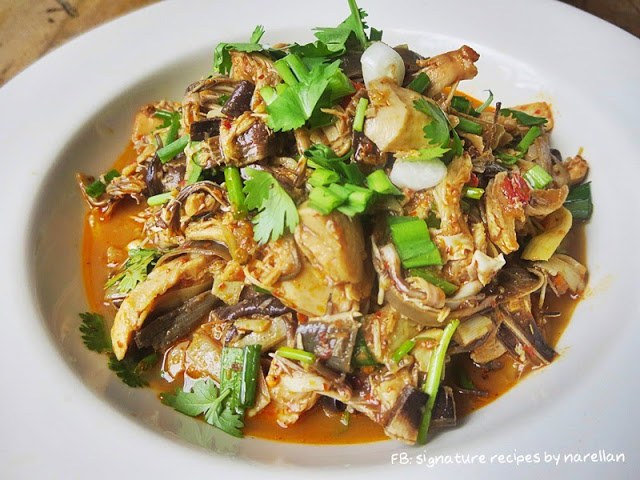 พอต้มไก่ได้ที่ก็นำมาฉีกเป็นชิ้น ส่วนน้ำต้มเก็บไว้เอามาผสมกับยำ