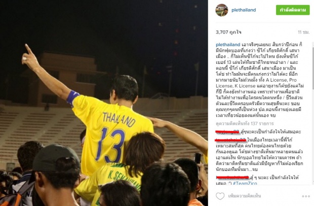 ซึ่งล่าสุด "เปิ้ล" อัสราภา เสนาเมือง ภรรยาของ "โค้ชซิโก้" ได้โพสอินตราแกรมตอบโต้สองโพสติดๆ โดยโพสแรก ได้ชี้ชัดว่า ซิโก้รับใช้ทีมชาติมาตั้งแต่ไหนแต่ไร และทำงานเพื่อชาติ ไม่ได้ทำเพื่อใครคนใดคนหนึ่ง ต่อด้วยโพสที่สองมาในเวลาใกล้เคียงกัน