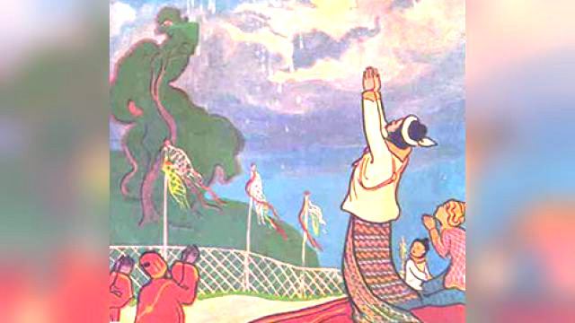 “ผู้ใดเป็นอรหันต์ในโลกนี้ จงมา"ทางอากาศ"รับเอาบาตรนั้นไป ผู้ใดถือบาตรนั้นได้(ด้วยวิธีนี้)เราจึงจะเชื่อถือผู้นั้นว่าเป็นพระอรหันต์ เราพร้อมด้วยภรรยา และบุตรจะขอถึงผู้นั้นเป็นสรณะที่พึ่งตลอดชีวิต”