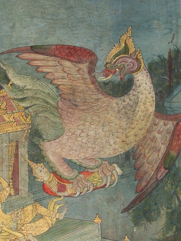 แม้พระนางนั้น อันนกนั้นนำไปอยู่ ทรงหวาดต่อมรณภัย จึงทรงดำริว่า “ถ้าว่าเราจักร้อง, ธรรมดาเสียงคน เป็นที่หวาดเสียวของสัตว์จำพวกดิรัจฉาน มันฟังเสียงนั้นแล้ว ก็จักทิ้งเราเสีย, เมื่อเป็นเช่นนั้น เราจักถึงความสิ้นชีพ พร้อมกับเด็กในครรภ์; แต่มันจับในที่ใดแล้วเริ่มจะกินเรา, ในที่นั้น เราจักร้องขึ้น แล้วไล่ให้มันหนีไป. พระนางยับยั้งไว้ได้ ก็เพราะความที่พระองค์เป็นบัณฑิต.