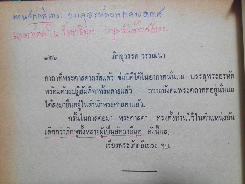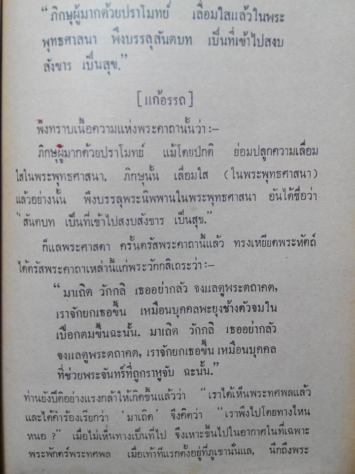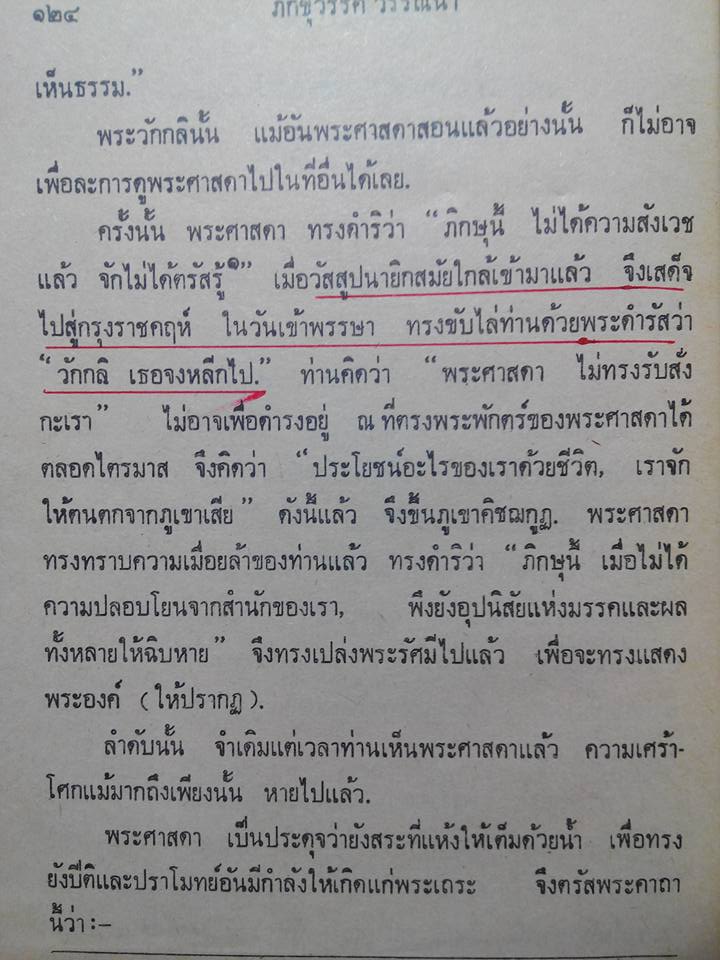 ท่านพระวักกลิจึงบรรลุพระอรหัตตผลท่ามกลางอากาศ แล้วเหาะมาเข้าเฝ้ากราบทูลการบรรลุธรรมถวายพระพุทธเจ้าตามประเพณี