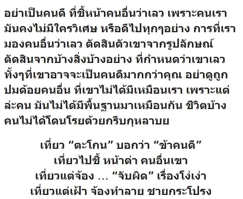 "อย่าเป็นคนดี ที่ชี้หน้าคนอื่น ว่าเลว" อย่าเที่ยวตัดสินคนอื่น จนลืมดูเงาหัวตัวเอง